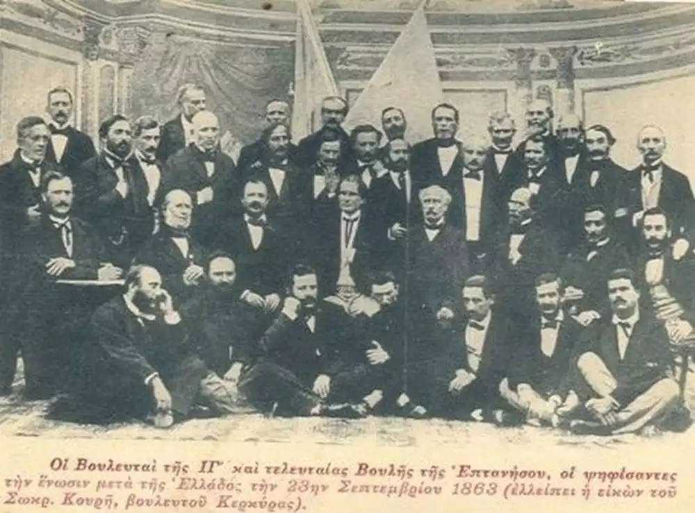 Ένωση Επτανήσων 1863: Η 13Η Βουλή, Οι Ηγέτες Της Ιστορικής Στιγμής, Σε Μια Σπάνια Φωτογραφία.