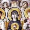 The fresco’s style melds traditional Byzantine hagiography with the 19th century’s newer fresco skills. While the rendering of the facial features tends towards naturalism, one still sees the priestly modesty customary in the Byzantine tradition of portraits; indeed, the very calmness of the figure might hint that it is an early work by Godfrey. Irrespective of whether these are his skills or those of the frescographer, it is clear that the act of fresco painting, with its conceptual parallels to mosaics, still clung quite closely to the traditional portraiture of hagiography in both the East and the West.