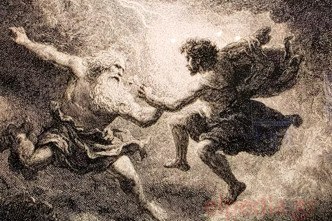 Now holding absolute power, Cronus married his sister, Rhea, inaugurating the reign of the Titans. However, a prophecy from his parents, Gaia and the wounded Uranus, haunted him. One of his sons, they told him, would overthrow him, following in his own footsteps. Blinded by fear and paranoia, Cronus resorted to an even more heinous solution: he decided to swallow his children as soon as Rhea gave birth to them. Hestia, Demeter, Hera, Hades, and Poseidon all found themselves imprisoned in their father’s belly. The castration of Uranus had set in motion an unstoppable cycle of violence, where the son repeated and escalated the sins of the father. Desperate, Rhea managed to save her last child, Zeus, by giving Cronus a swaddled stone to swallow. Zeus’s upbringing in Crete, away from his father’s gaze, prepared the stage for the next, even more catastrophic chapter of this divine conflict: the Titanomachy. Cronus’s act, which initially seemed like a liberating rebellion against a tyrant, proved to be merely the precursor to a new, even harsher tyranny, confirming that violence only begets more violence.