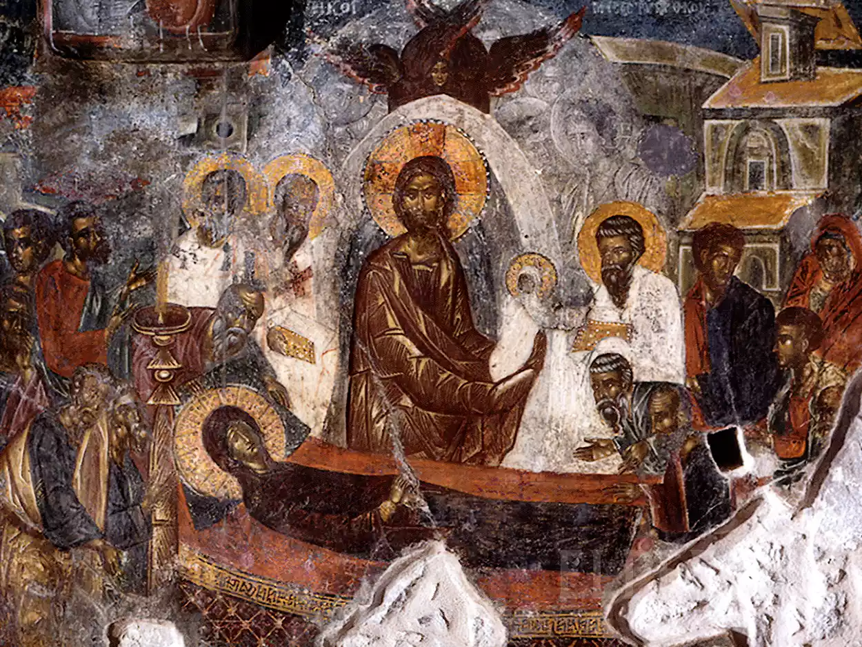 The expressiveness of the faces of the Apostles in the fresco of the Dormition of the Theotokos captures the mourning and surprise in front of the miracle.