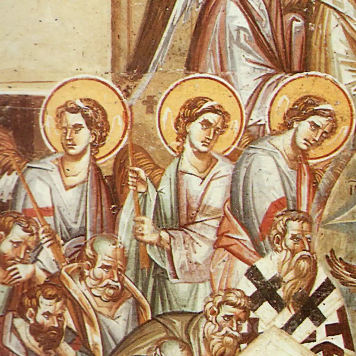 This heavenly arrangement is one of the most original compositional solutions of the artists and reflects the influence of the Paleologan perception of the hierarchical organization of the heavenly world. It has been observed that the depiction of angels in Byzantine frescoes of the period follows specific patterns associated with pseudo-Dionysian angelology, where the angelic orders are structured into nine choirs.