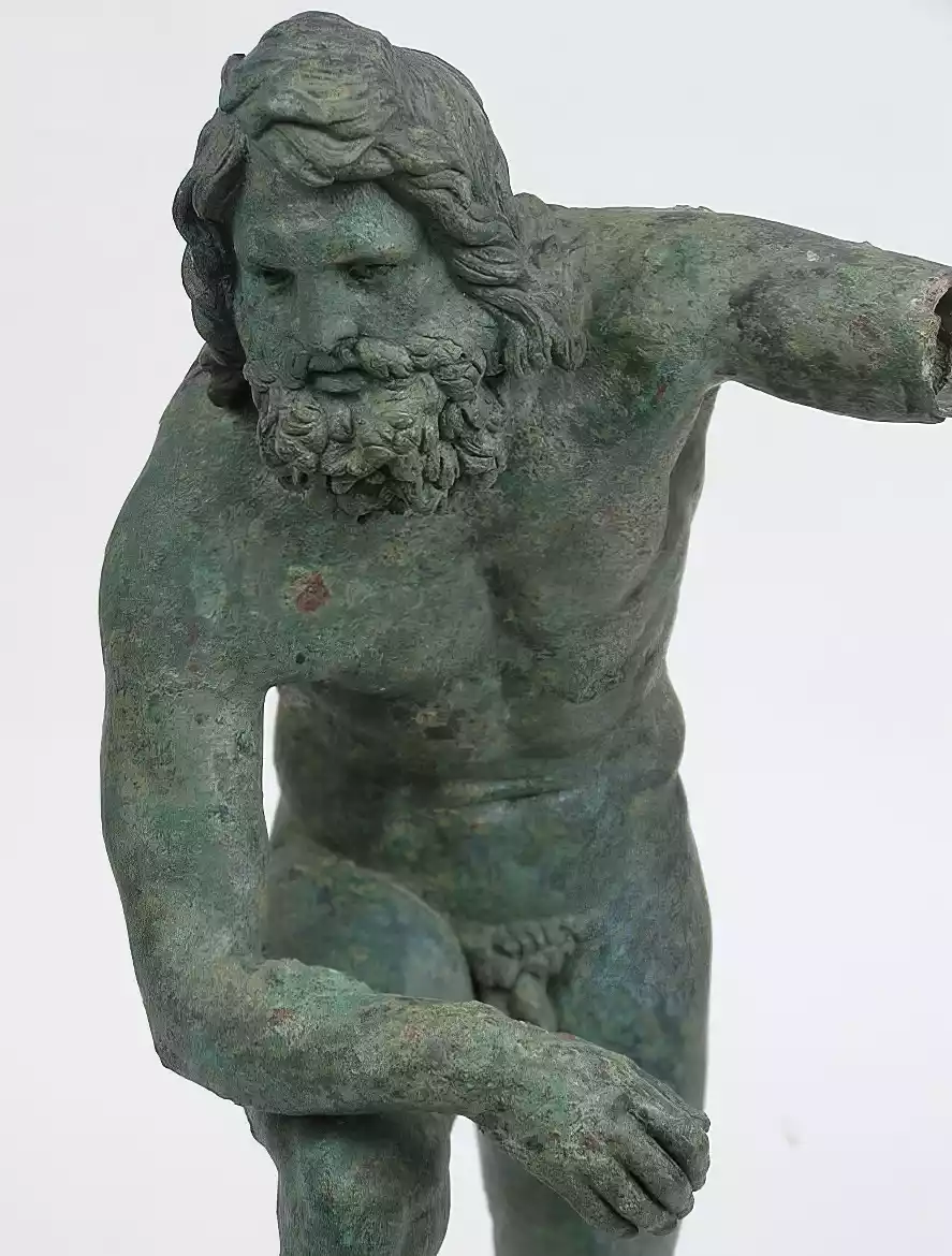 Statuetta in bronzo di Poseidone, II secolo d.C., dal “Ritrovamento di Ampelokipoi”. Rappresenta il dio in posizione di riposo, con muscolatura pronunciata e capelli bagnati. Basata su un originale di Lisippo. Museo Archeologico Nazionale di Atene, n. inv. Χ 16772.