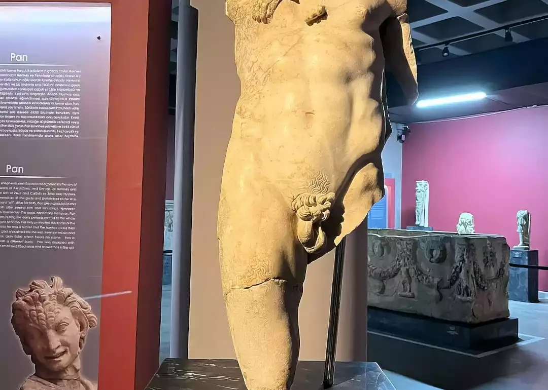 L’eccezionale statua in marmo del dio Pan, proveniente dall’antica Lappa (oggi Argyroupoli), rappresenta la concezione romana tardiva della divinità agricola del II secolo d.C. Museo Archeologico di Heraklion.[/caption>
