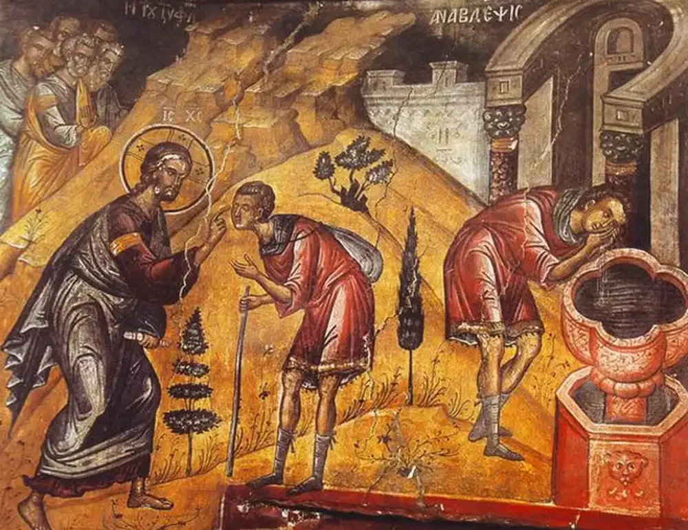 Στην ευαγγελική περικοπή της Κυριακής αυτής, παρουσιάζεται η θεραπευτική δύναμη του Χριστού με δύο παραδείγματα άκρως σημαντικά για τον άνθρωπο – την επαναφορά της όρασης και της ακοής. Οι δύο τυφλοί, ζώντας στο σκοτάδι, επικαλούνται τον Κύριο ως Υιό του Δαυίδ, πιστεύοντας ότι μόνο Αυτός μπορεί να τους χαρίσει το πολύτιμο δώρο του φωτός. Παράλληλα, ένας άνθρωπος κωφός και δαιμονισμένος οδηγείται ενώπιον του Ιησού, όπου και απαλλάσσεται από τα δεσμά του πνεύματος του σκότους. Οι περιγραφές αυτές δεν είναι απλώς καταγραφές ιστορικών γεγονότων, αλλά συμβολίζουν την ανάγκη για πνευματική αναγέννηση και απελευθέρωση από τις αμαρτίες που τυφλώνουν τον άνθρωπο.