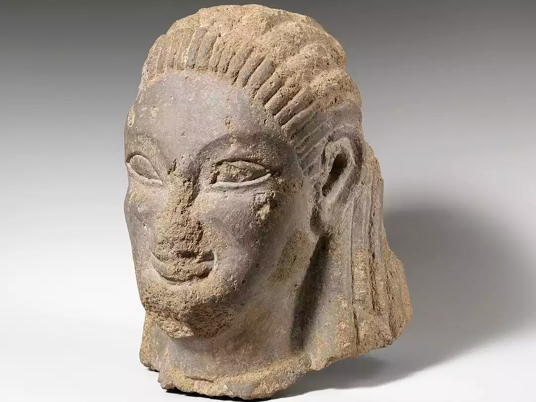 Κεφαλή Σφίγγας ή Σειρήνας από τόφφο (ηφαιστειακό πέτρωμα). Ετρουσκικό έργο, πιθανώς από το Vulci, περ. 550–525 π.Χ. Νέα Υόρκη, Μητροπολιτικό Μουσείο Τέχνης